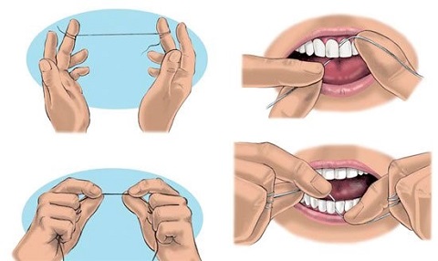Khi dùng chỉ nha khoa bạn cần lấy 1 đoạn dài từ 45 – 50cm cuộn vào 2 ngón tay trỏ, sau đó đặt vào răng di chuyển nhẹ nhàng lên xuống đến khi cảm thấy mảng bám sạch hoàn toàn.